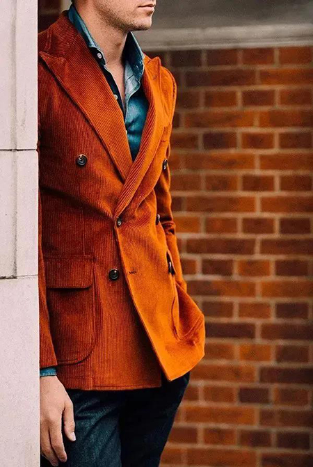 藏青色搭配復古燈芯絨